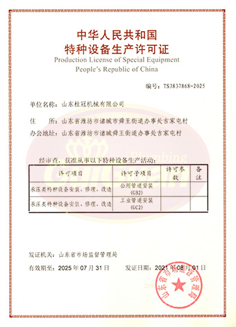 山東桂冠機(jī)械有限公司成立于2008年,注冊(cè)資金1600萬(wàn)元,現(xiàn)有員工200多人,中高級(jí)技術(shù)管理人員45人,占地面積27000多平方米,生產(chǎn)車(chē)間面積12000多平方米。公司具備壓力容器產(chǎn)品的設(shè)計(jì)、制造(證書(shū)編號(hào)為:TS2237703-2025)、壓力管道安裝(證書(shū)編號(hào)為T(mén)S3837607-2025)全套壓力容器資質(zhì);通過(guò)國(guó)家ISO9001質(zhì)量管理體系認(rèn)證、美國(guó)ASME認(rèn)證、歐盟CE認(rèn)證;擁有建筑安裝機(jī)電工程專業(yè)承包叁級(jí)資質(zhì)、建筑工程施工總承包叁級(jí)資質(zhì)及對(duì)外貿(mào)易經(jīng)營(yíng)出口權(quán)…